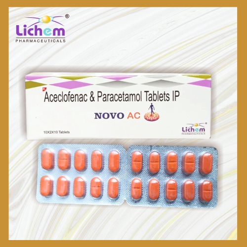 | Novo AC Tablet | ACECLOFENAC 100 MG + PARACETAMOL 325 MG | 10*2*10 (Blister pack) | View Catalog | View Product |